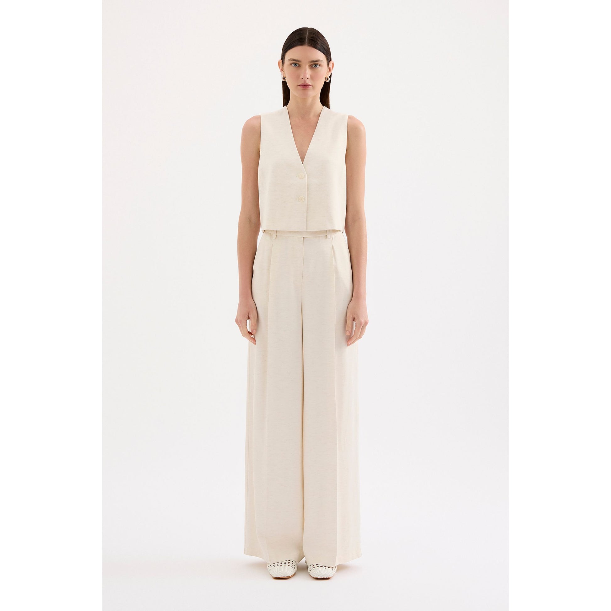 The Alfie Vest combines comfort and style in a breathable linen blend with distinctive slub texture. This cropped silhouette features a flattering deep V neckline and convenient front button closure. Fully lined for a polished finish, it's an effortless layering piece perfect for warm weather dressing.