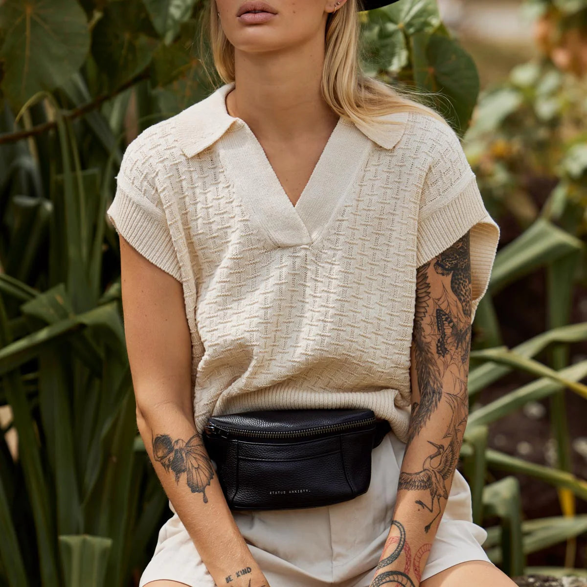 There's no denying the humble bum bag has a shady past...but times are a-changing. Featuring a wide opening main zip compartment, gunmetal hardware and secret stash back zip pocket.