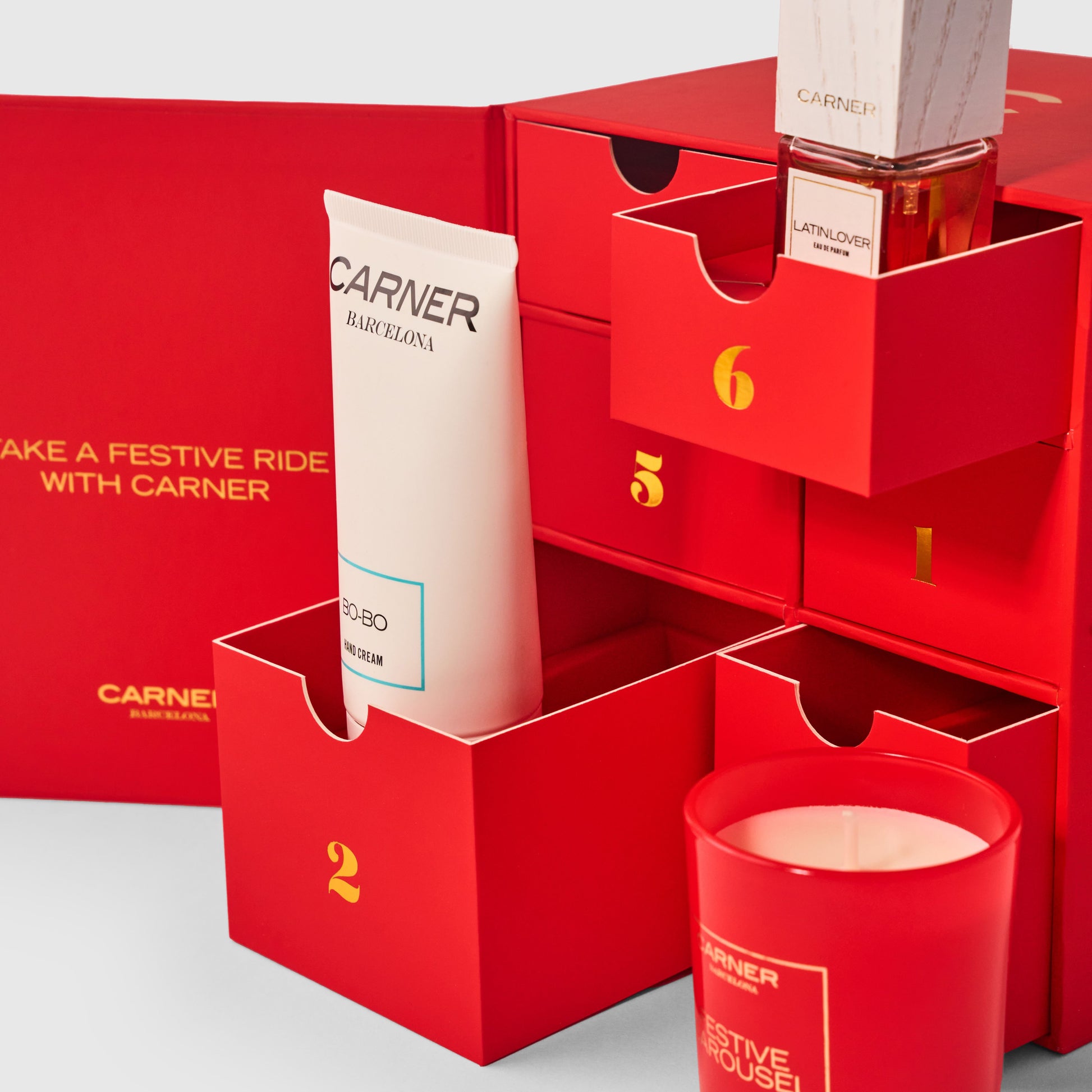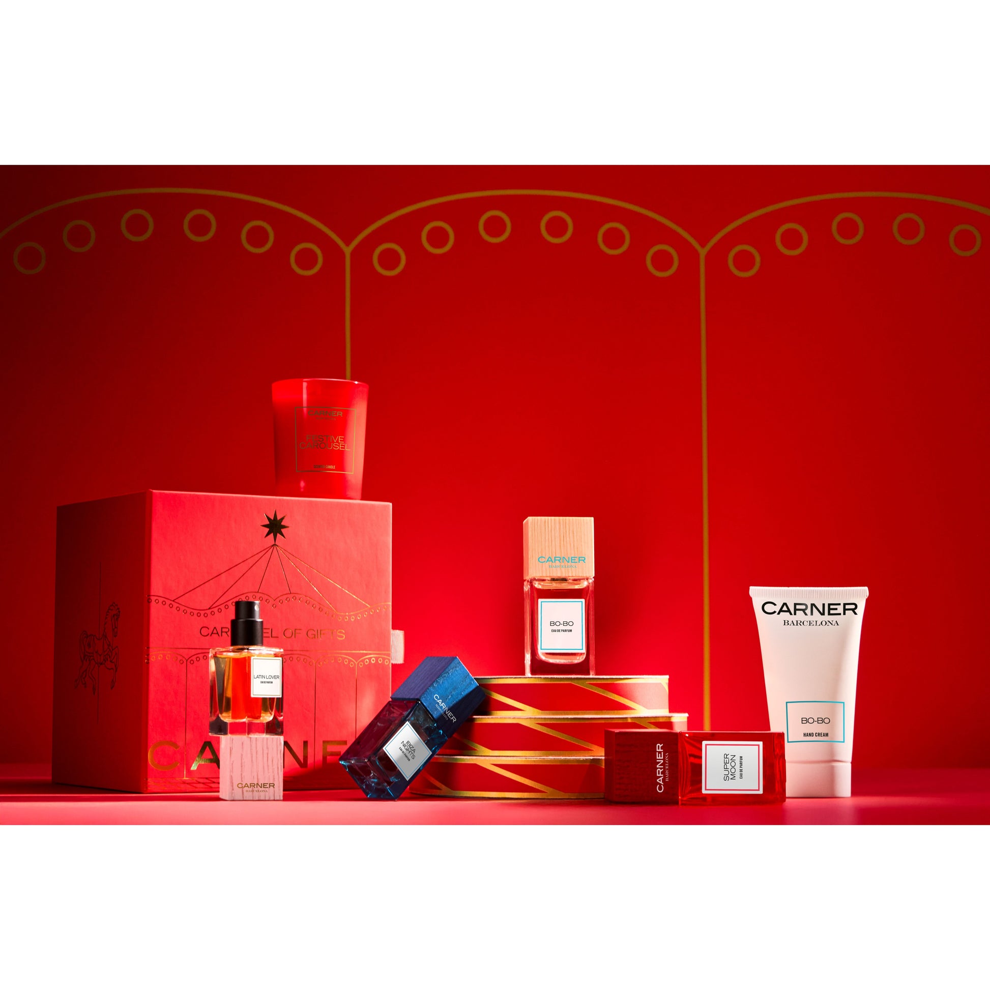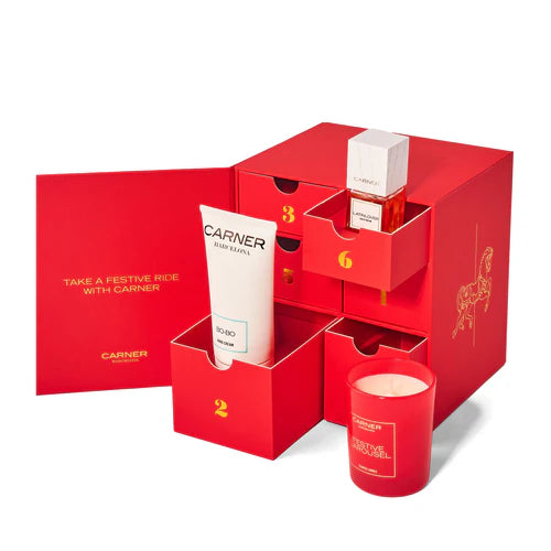 Discover the enchantment of Barcelona's iconic Tibidabo Carousel with this exclusive Carner Christmas Carousel gift set. This limited edition collection brings together six carefully curated fragrances, including Bo-Bo 30ml and 50ml hand cream, Scented Candle 75mg, Ibiza Nights, Super Moon, and Latin Lover—each a gateway into Carner Barcelona's distinctive olfactive world. Crafted in Spain and presented as a joyful holiday edition, this set captures the brand's signature blend of sophistication and whimsy. Perfect for fragrance enthusiasts seeking to explore premium Spanish perfumery or as a luxurious seasonal gift.