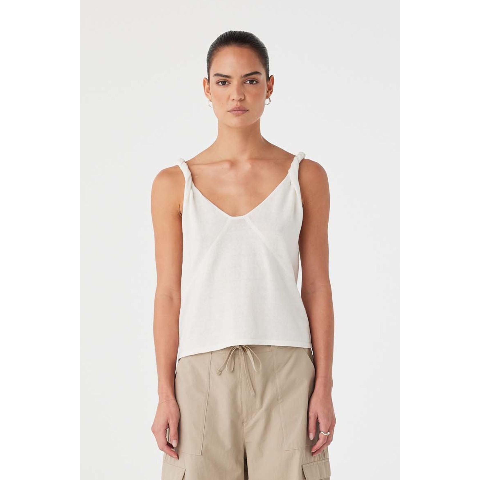 - Relaxed silhouette with twist strap details - Shaping seams for subtle structure - Made from 55% linen and 45% organic cotton blend - Natural breathability with a soft hand feel - Perfect for warm weather or layering