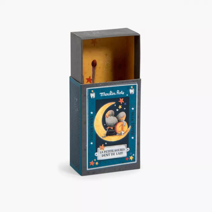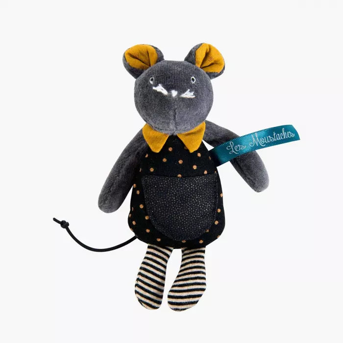 Did you know – even mice loose their teeth? When they do, they leave them on their bedside table, just like us and wait for the tooth fairy to deliver small gifts. Introducing the Les Moustaches milk tooth mouse. This adorable little friend has been designed with the highest level of detail with plush fur, glittery pocket, tiny striped leggings, and snappy polka dotted outfit. The tiny mouse comes in its own illustrated box for safe keeping.