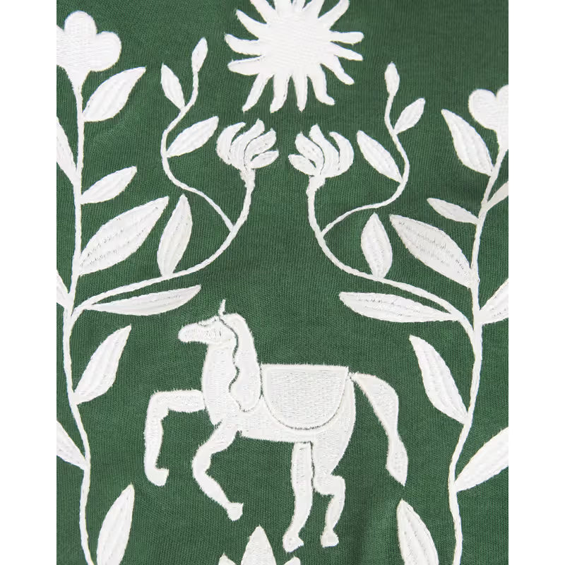 Laurel T-shirt Heavyweight 300g cotton interlock knit with a matte handfeel. Classic crewneck and short sleeves deliver timeless style. Durable yet soft and breathable construction. Back features a striking blend of print and embroidery with seasonal artwork. Relaxed fit for everyday comfort. Model: 180cm/5'11", size M