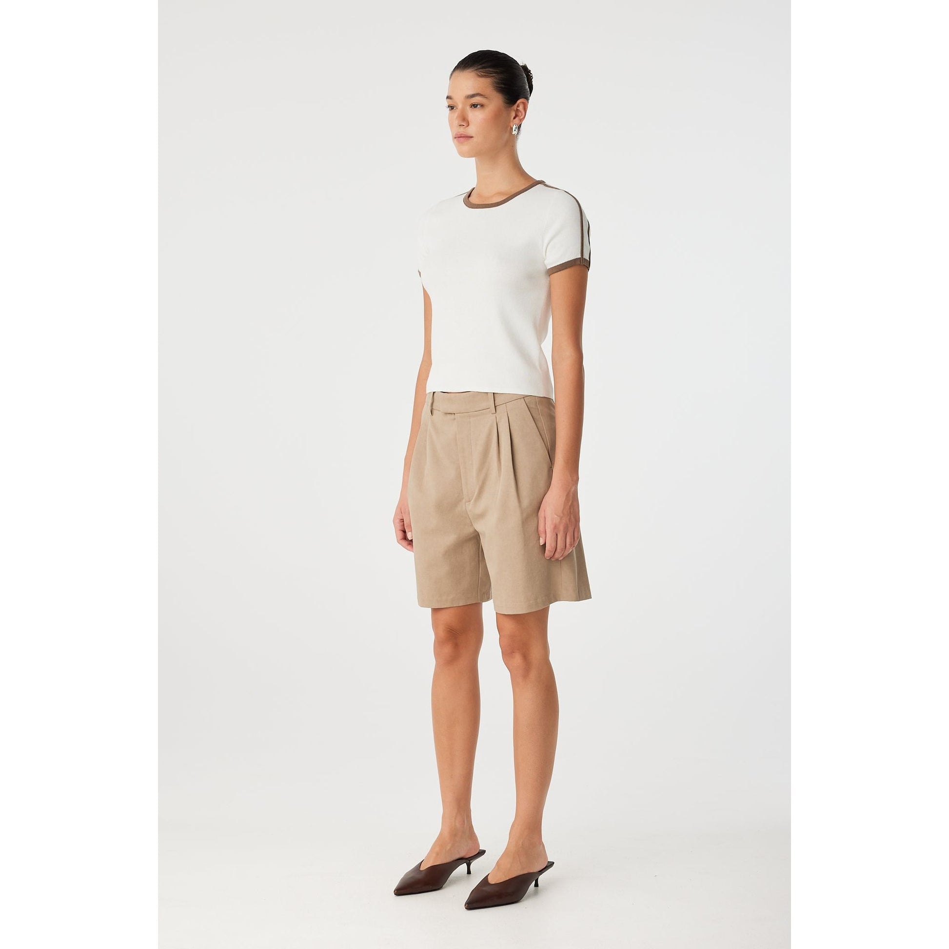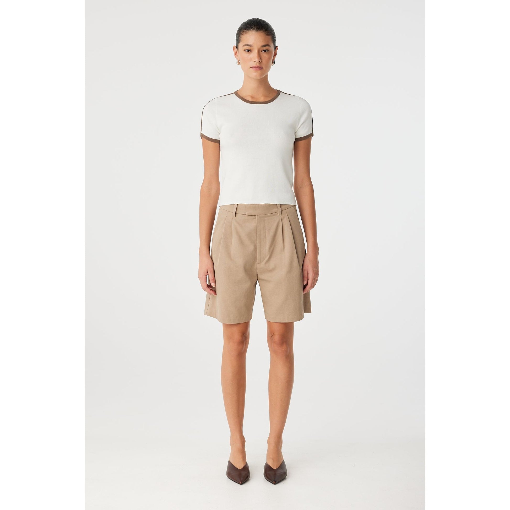 - Made from 100% organic cotton, OEKO-TEX® certified - Smooth, lightweight knit fabric - Cap sleeves with contrast stripe - Classic crew neck with ringer trim - Fitted silhouette with slight stretch - Breathable and soft on skin - Machine washable in cold water