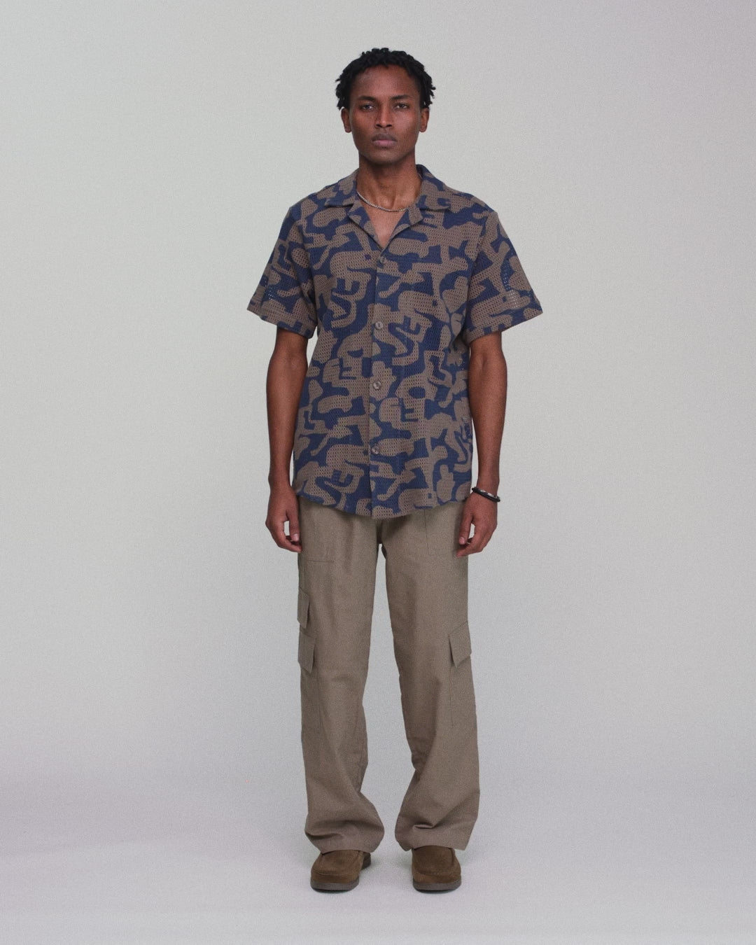 100% cotton midweight knitted bobbinet shirt with breathable fabric and resort collar. Features a relaxed fit with slightly dropped shoulders, true to size. Designed in Stockholm, made in Portugal. Article: 7014-04.