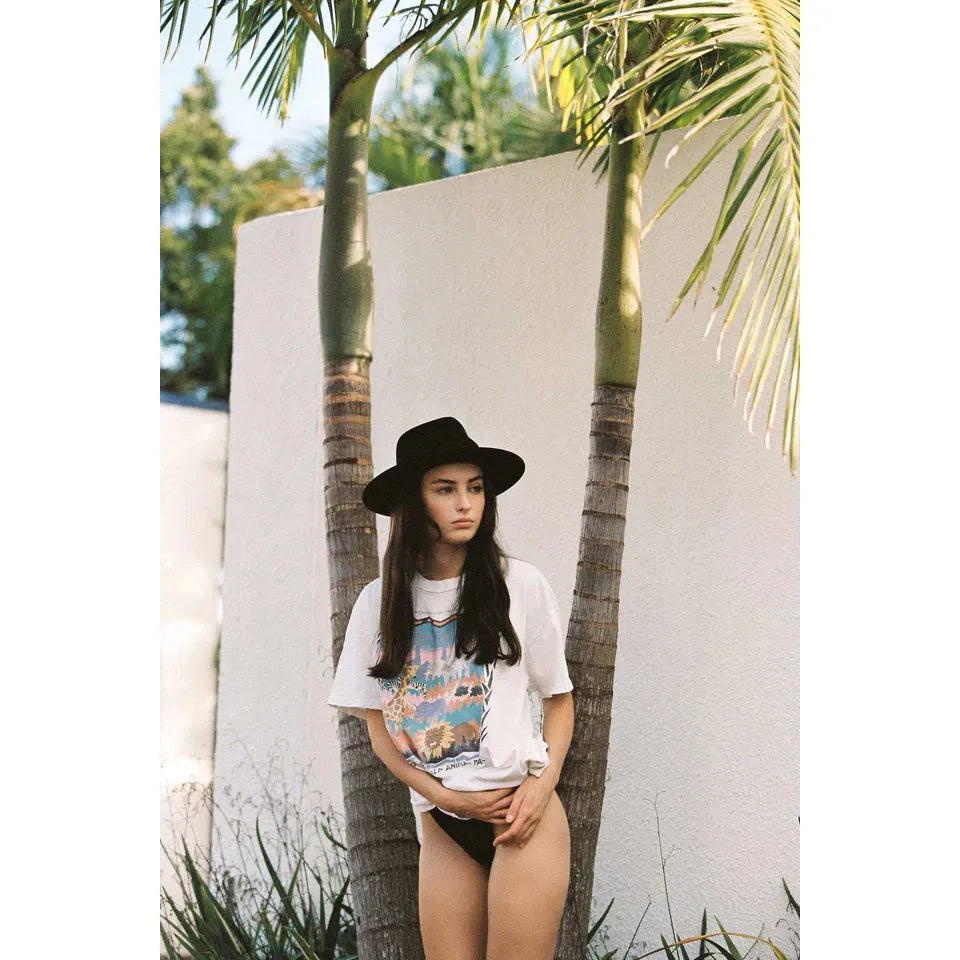 - Made from 100% soft Australian wool - Trimmed with black vegan leather band and gold stud - Brim size: 7.5 cm (2.95") - Classic crown height - Unisex design - UPF 50+ sun protection, Australian tested