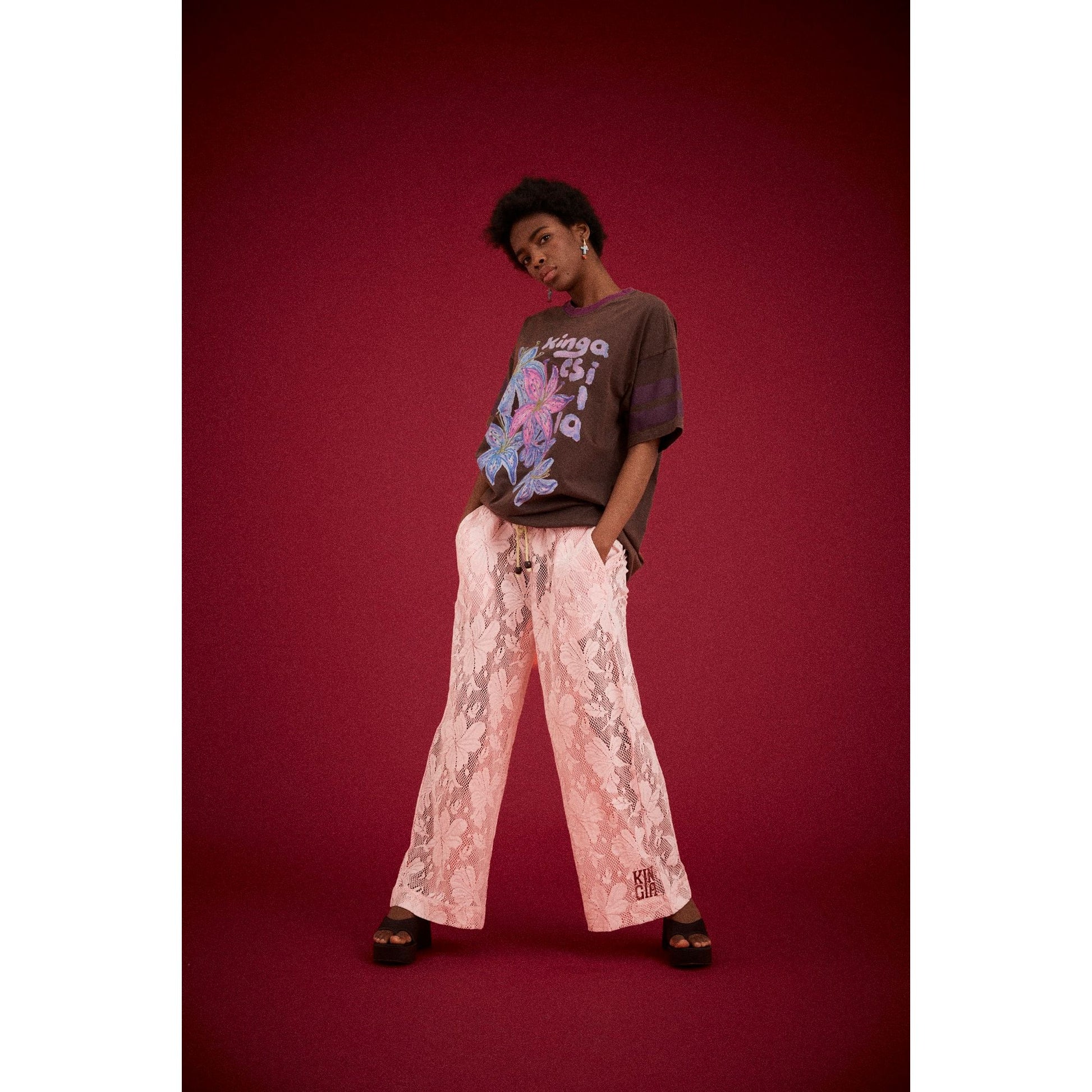 The Nova Lace Shyla Pant is a relaxed statement piece featuring a wide-leg silhouette that moves beautifully with every step. Crafted from cotton-rich delicate floral lace, it delivers a sheer, airy aesthetic perfect for warm weather or layered looks. The comfortable elasticated waistband and lightweight fabrication ensure effortless wear throughout the day. Style it with the Nova Lace Onyx Tee or pair with oversized knits for an understated, modern vibe.