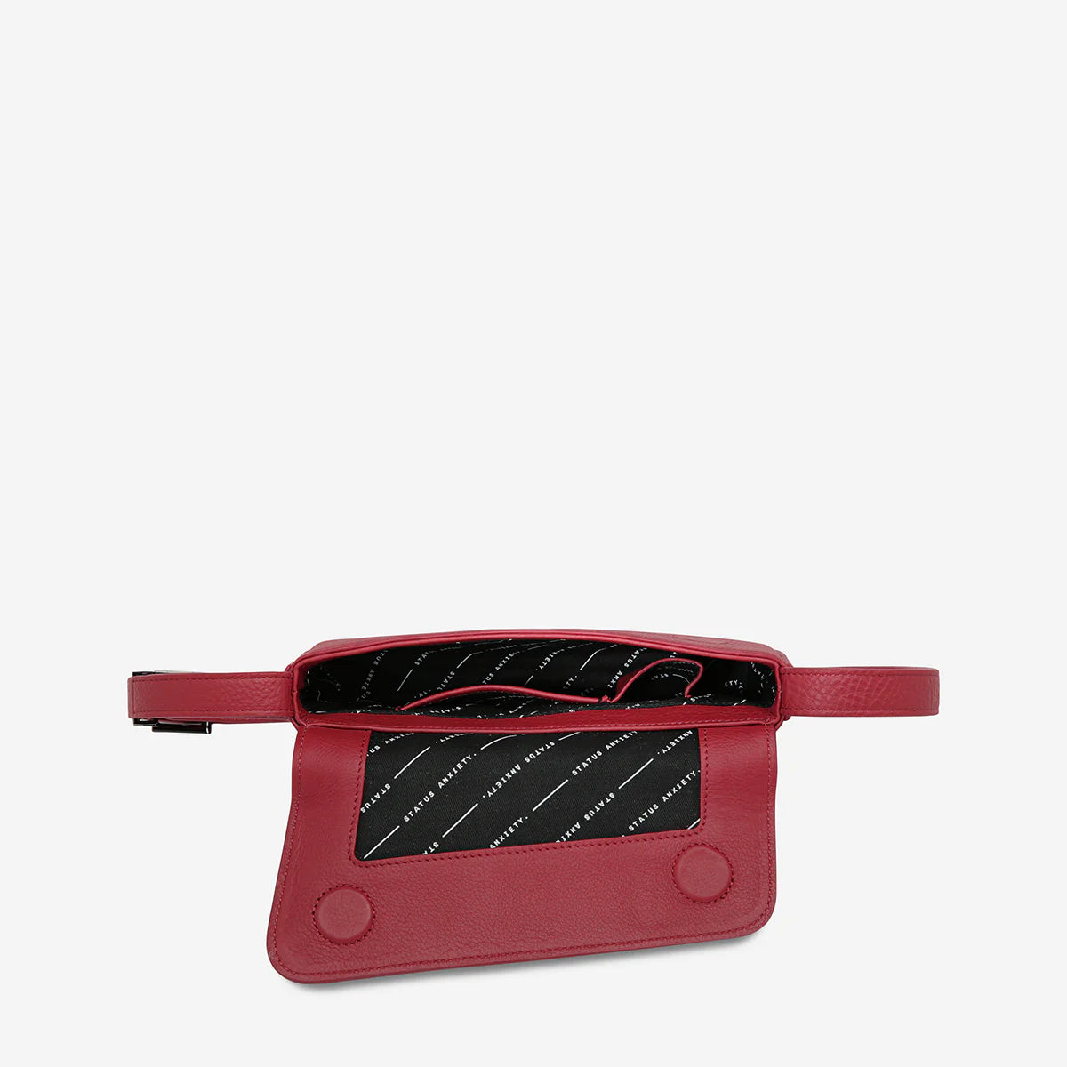 Enigmatic and ready for spontaneous adventures, the Overnight Obsession captures effortless style with its perfectly asymmetrical silhouette. Crafted from soft shrunken pebble leather, this compact shoulder bag features a longer adjustable strap for versatile carrying, custom Status Anxiety branded hardware, and thoughtful interior organisation including a back slider pocket, open pouch, and dedicated lipstick pocket. The secure magnet closure keeps essentials protected, while the custom lining and branded drawstring bag complete this commitment-free companion for those last-minute getaways.
