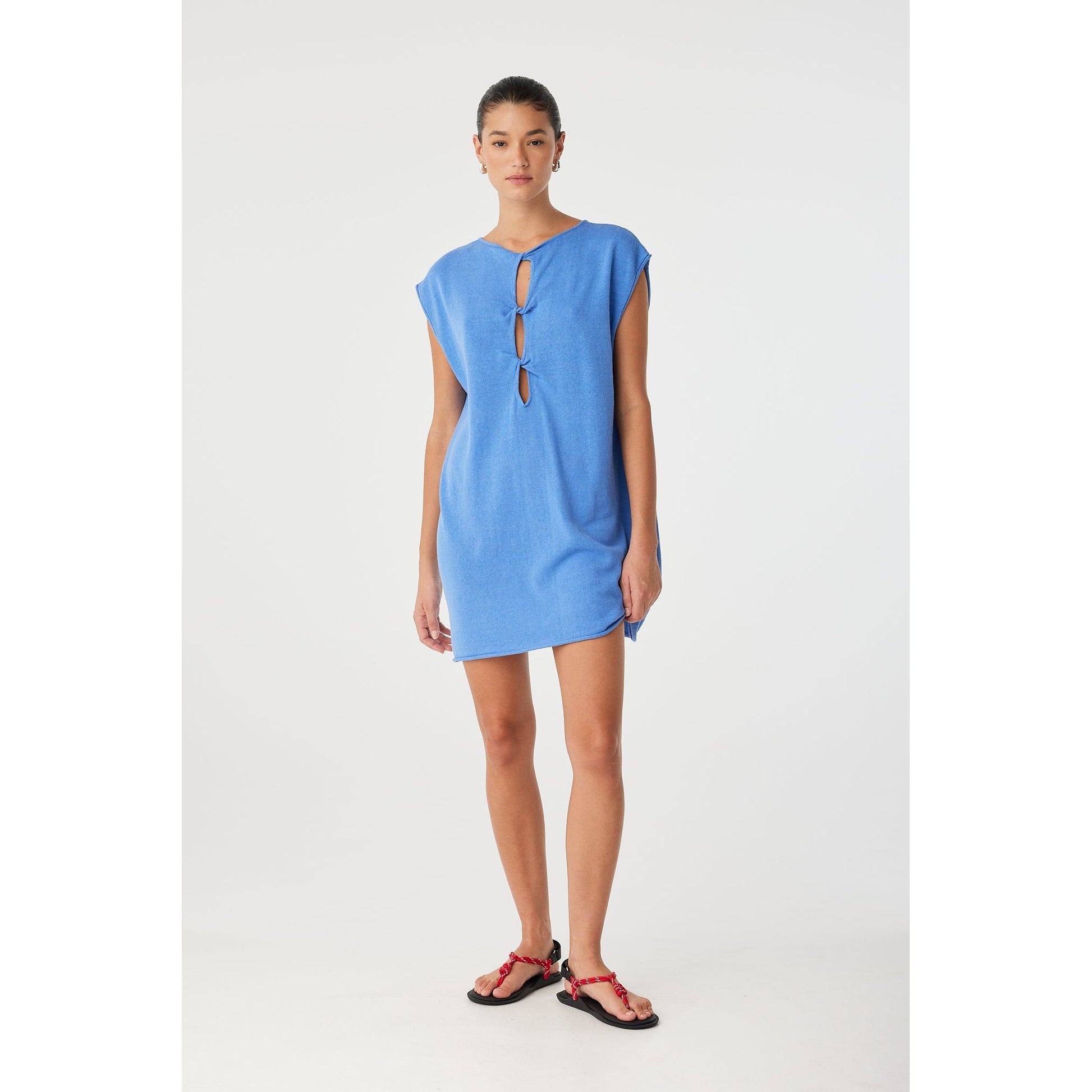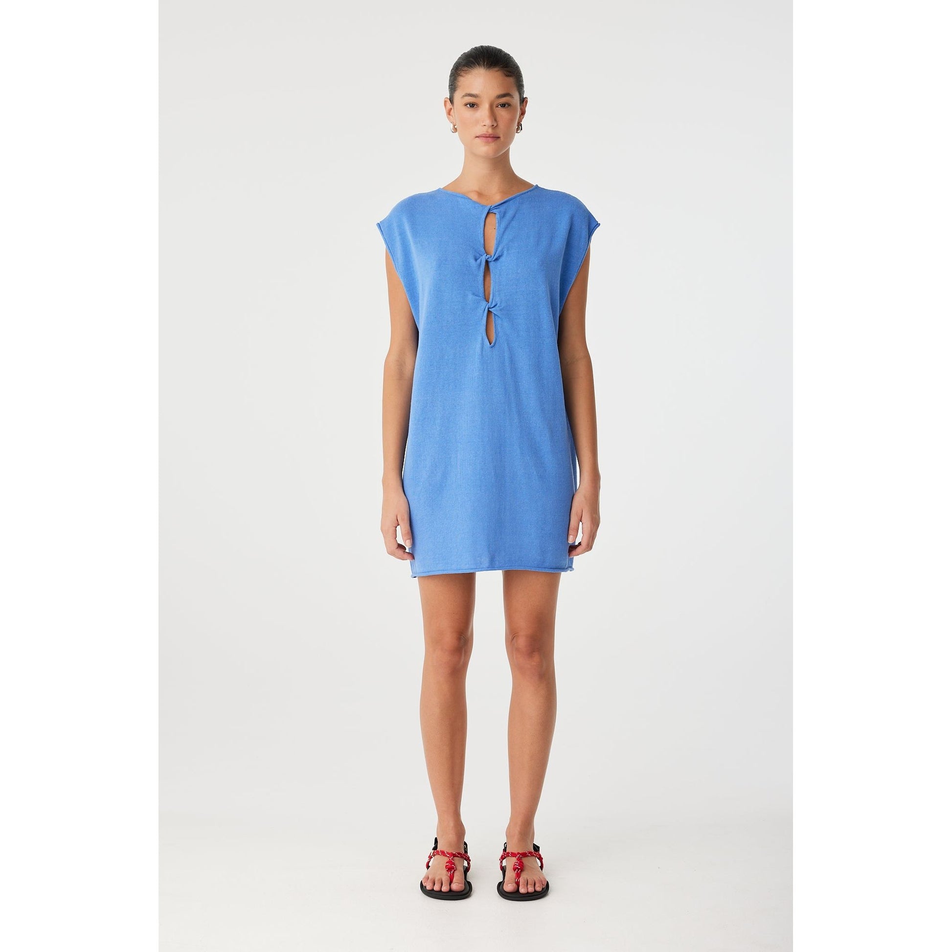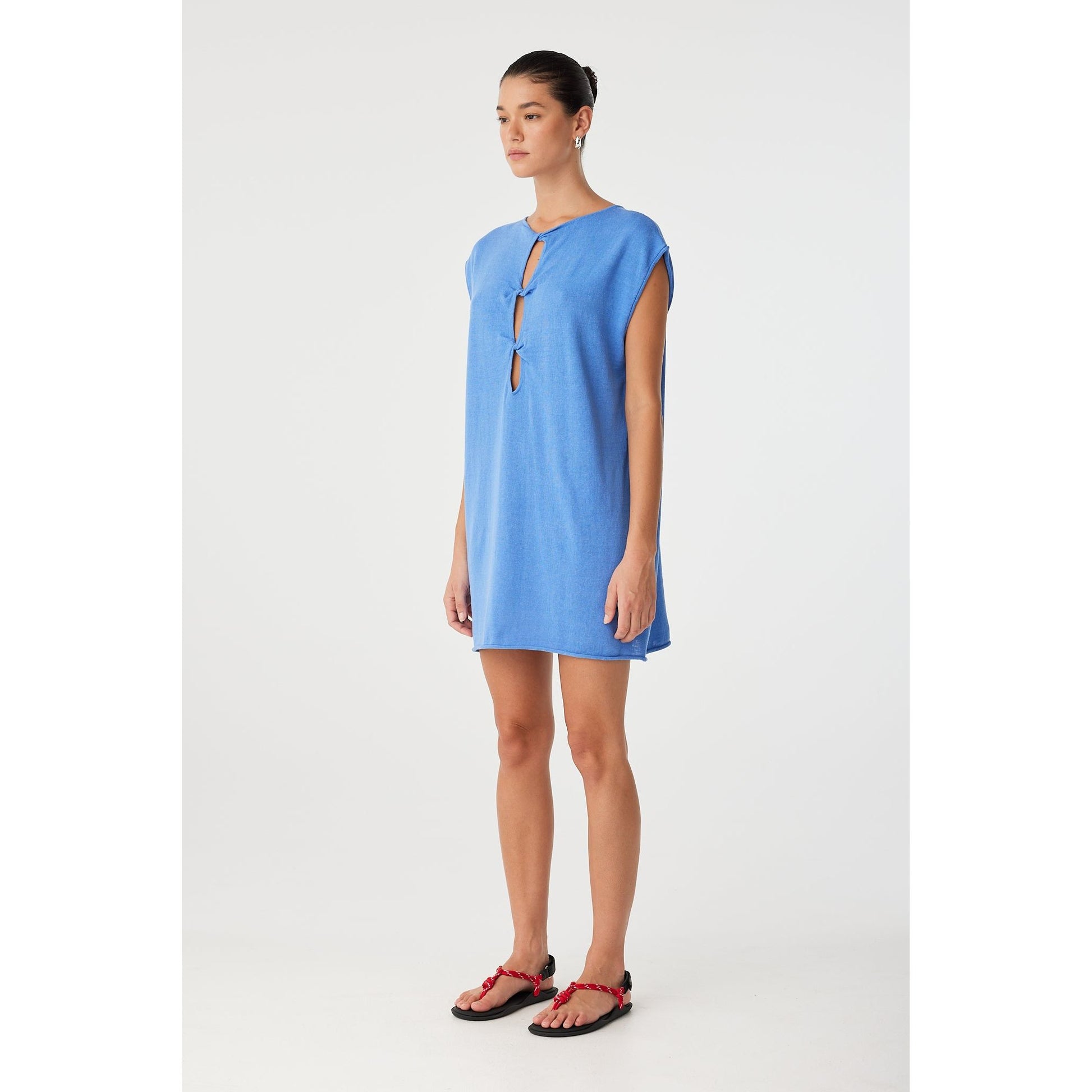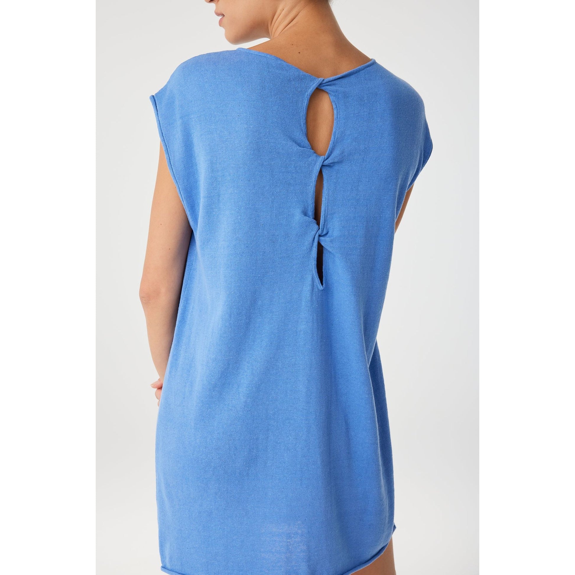 - Made from 55% linen and 45% organic cotton - Textured midweight breathable fabric - Straight shift fit with relaxed drape - Sculptural twist cut-out, reversible wear - Ethically crafted with low-impact fibers