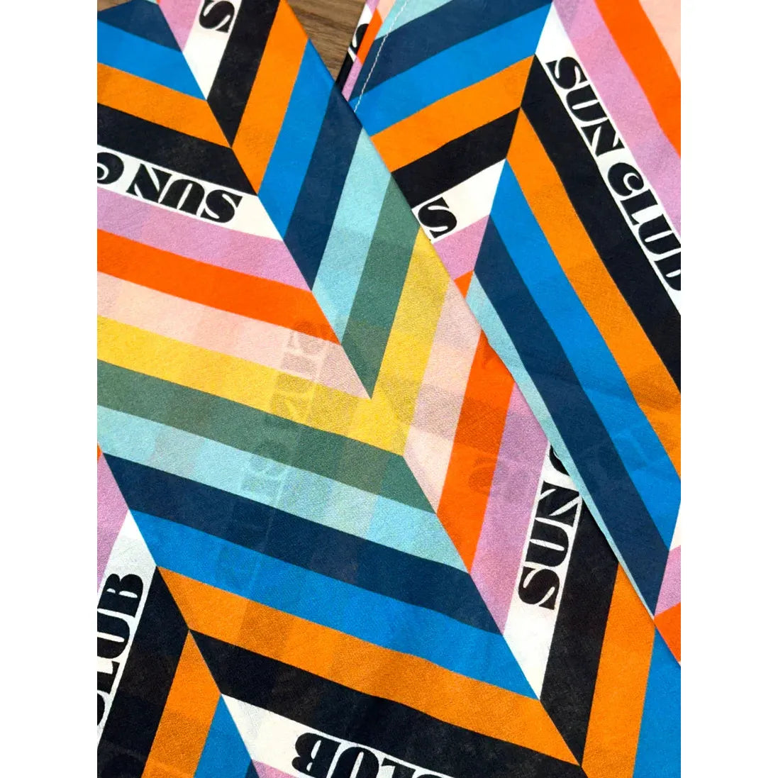 This Limited Edition Sun Club Beach Sarong Wrap features a custom-branded multicolour chevron pattern inspired by the Italian Coast. Crafted from 100% lightweight cotton voile, it offers exceptional breathability for warm summer days. Versatile styling options include tying at the bust as a sun dress, halter, or strapless top, folding as a mini pareo, wearing full length, or folding into a triangle as a headscarf. Measuring 51 x 64 inches, this breathable and stylish pareo is an essential accessory for your next holiday. Easy care with cold hand or machine wash.