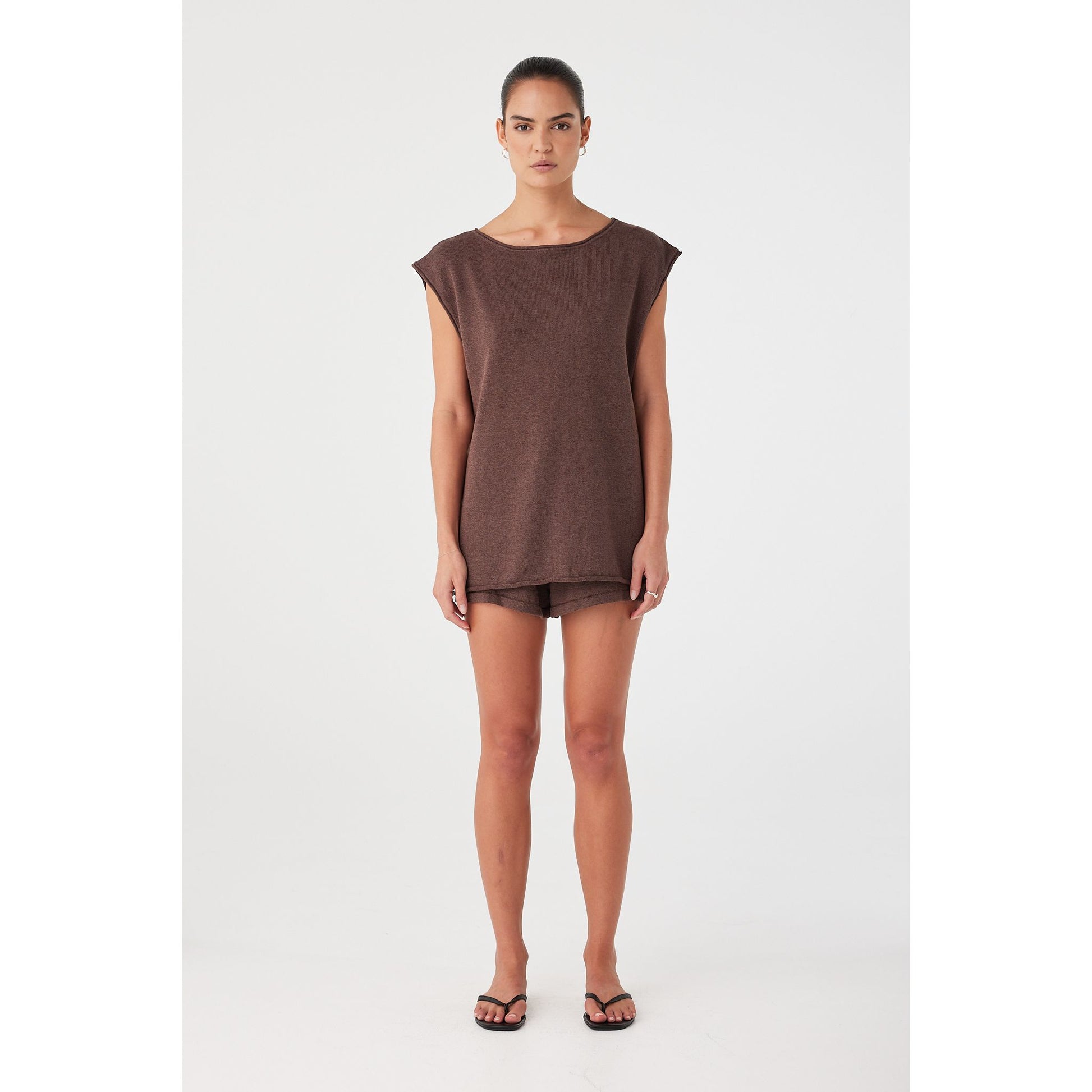 60% linen, 40% organic cotton blend with OEKO-TEX® certification. Oversized silhouette with adjustable side split ties for a customizable fit. Features rolled edge finishing at the neckline and armholes, plus a lightly textured, breathable weave. Sleeveless design keeps you cool in warmer months. Machine washable in cold water. Versatile piece that transitions effortlessly through the seasons.