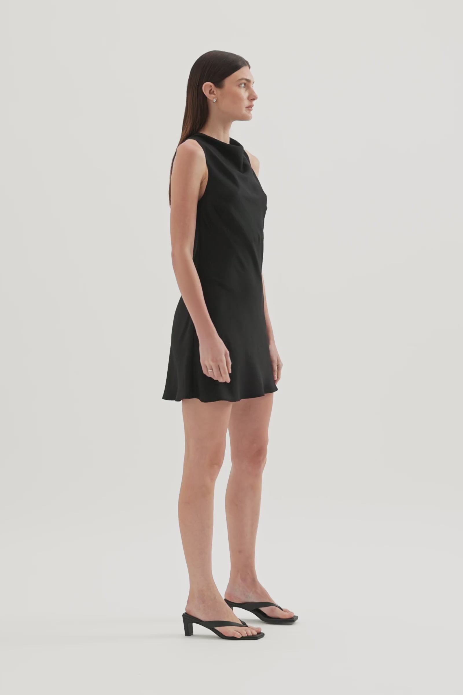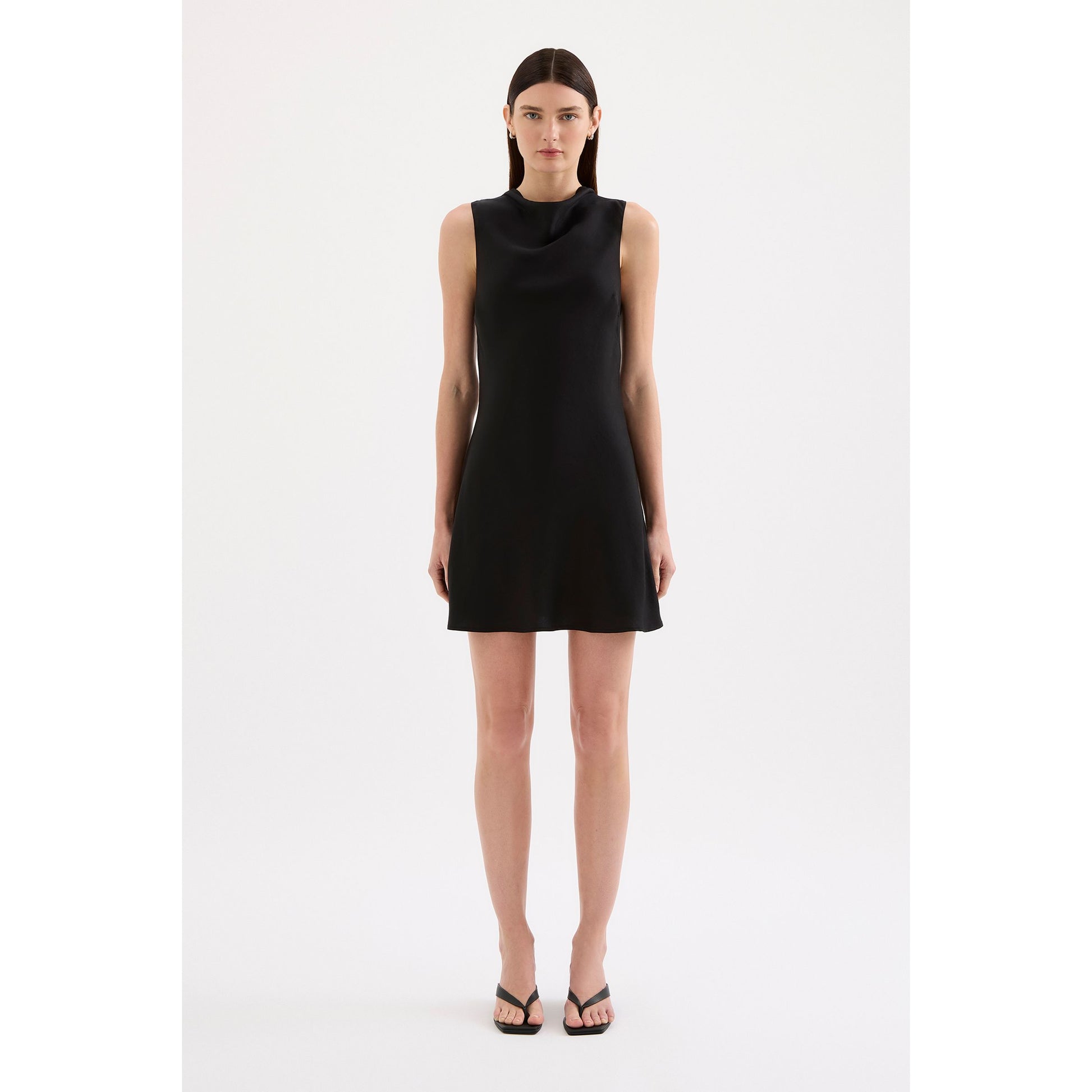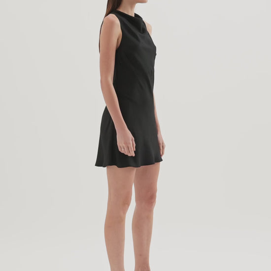 The Sora Mini Dress combines luxe viscose blend fabric with effortless elegance. This sleeveless slip dress features a flattering high cowl neckline, mini length silhouette, and a chic back keyhole opening. Lightweight and silky to touch, it's the perfect piece for elevated everyday styling or evening occasions.