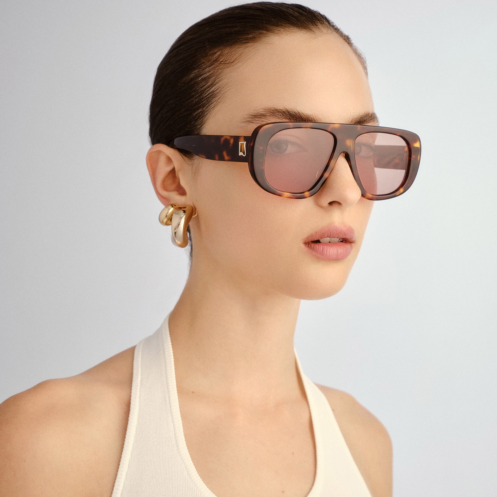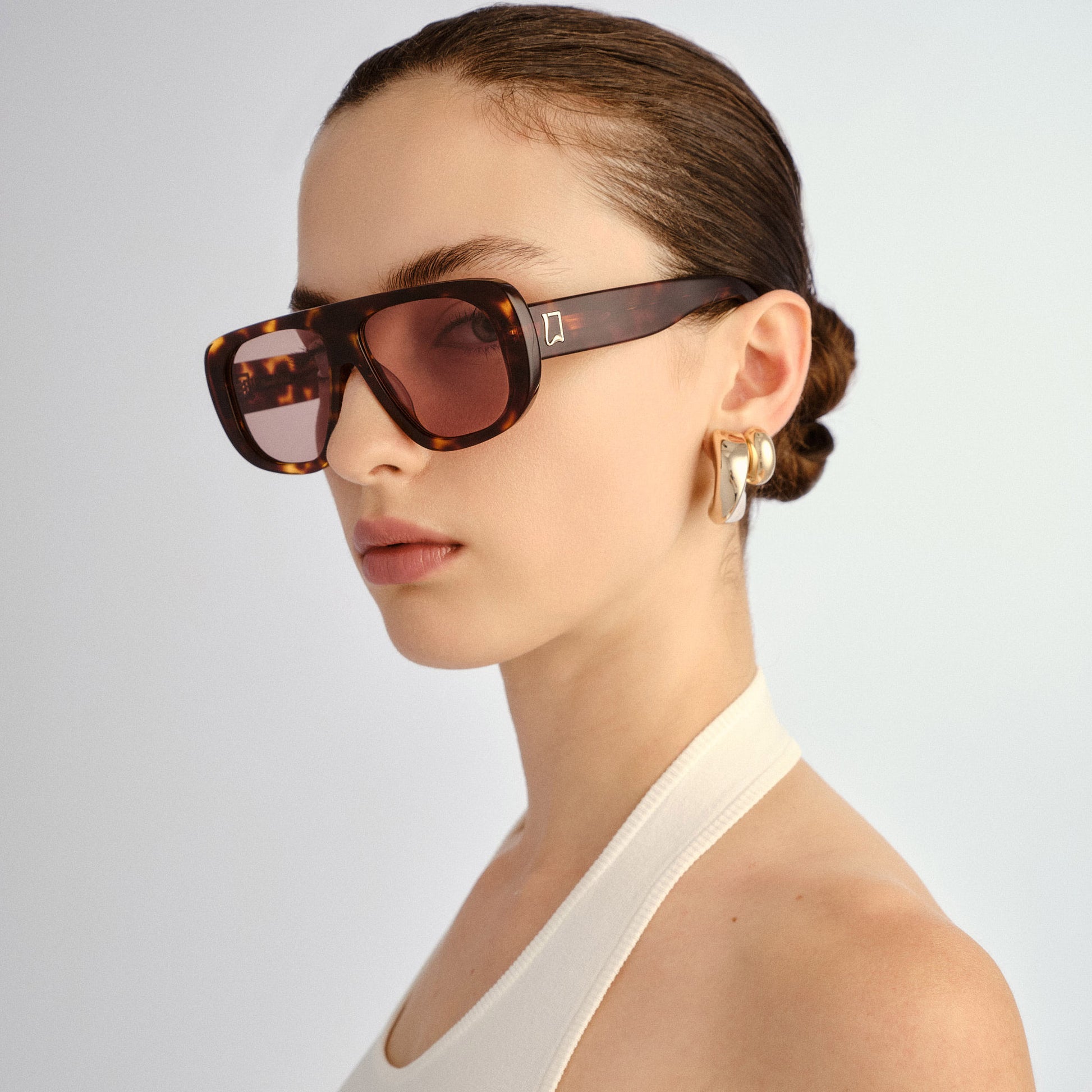 An icon of effortless confidence. The Dionne elevates the oversized aviator with clean lines and a refined proportion. Handmade from premium acetate, the design is finished with bespoke organic L-square badge hardware at the temples, offering a signature touch of modern sophistication.