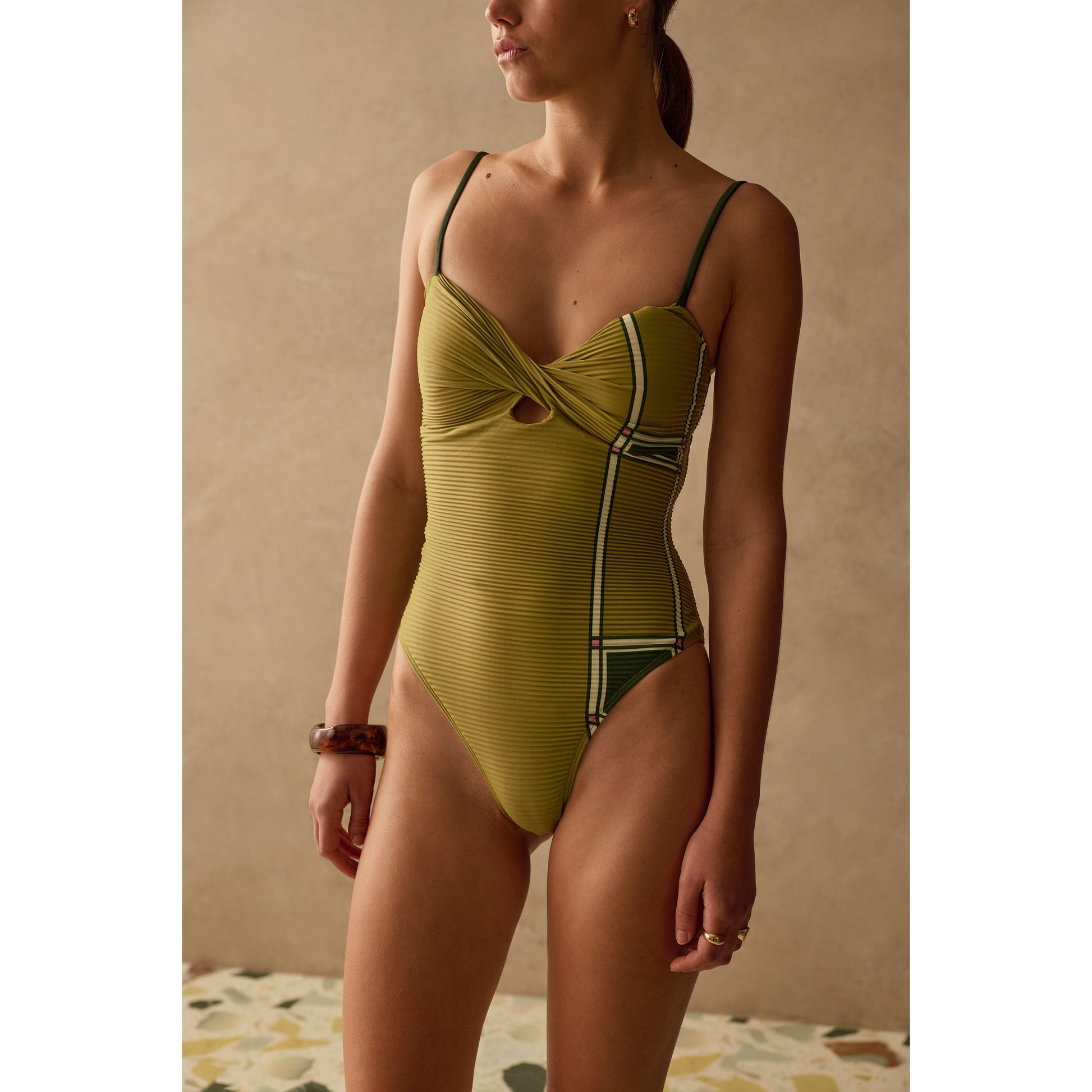 The Ishani One Piece in Valletta Print combines sophisticated design with practical comfort. Crafted from a supportive pleated fabric, this swimwear features a striking twisted bust detail that flatters the silhouette beautifully. The fully lined construction includes removable padding for customizable support, while adjustable straps ensure an ideal fit for your body. A back clasp closure adds convenience, and the interplay of texture, print, and rich cocoa and pacific tones creates a truly distinctive look. Made from 84% polyester and 16% elastane, it's designed for durability and stretch. Care is simple with gentle hand washing in cold water and line drying in shade. True to size and expertly tailored for confident, all-day wear.
