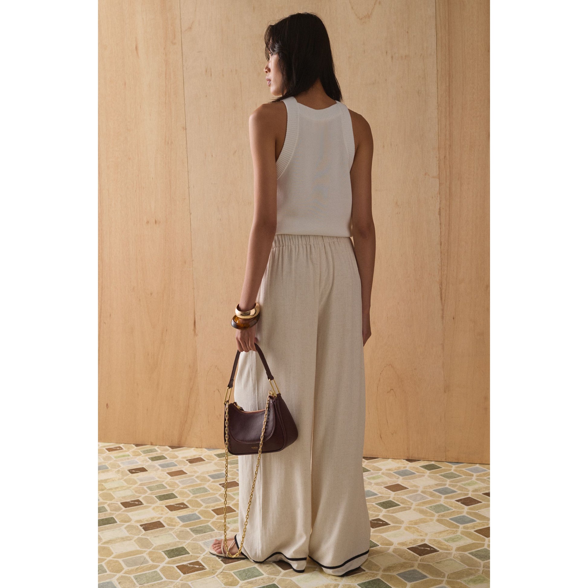 Slip into effortless style with The Noa Pants—a breezy essential that's as fun to wear as it is flattering. Crafted from a luxe blend of 70% viscose and 30% linen, these wide-leg beauties feature a comfy elasticated tie waistband, full rayon lining, and cheeky contrast hemline stripes that add personality to every step. Perfect for warm weather adventures, from beachside strolls to casual catch-ups. Just remember: gentle hand wash in cold water, line dry in the shade, and skip the tumble dryer to keep them looking fresh.