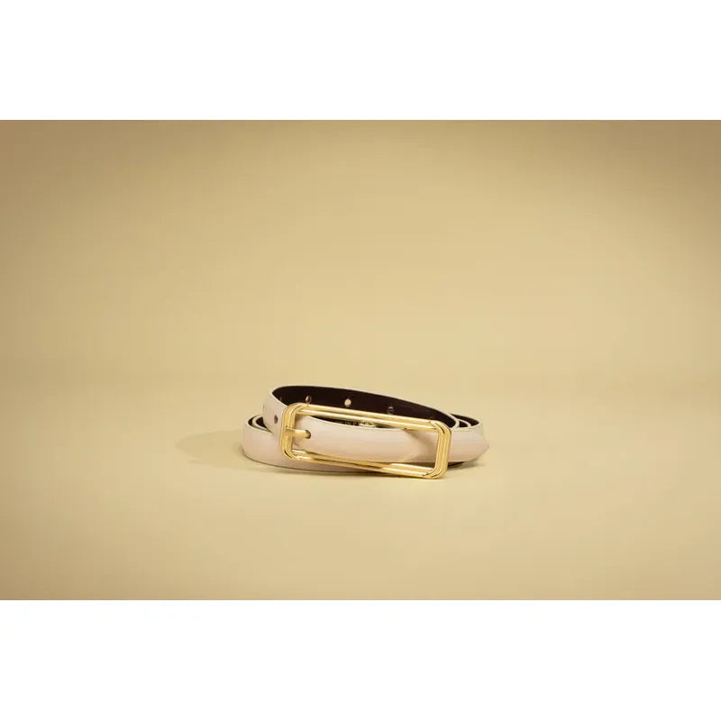 Picarra Brushed Gold Buckle Belt Elevate your everyday style with this refined vegetable tanned leather belt from SANCIA. The standout feature is the sophisticated brushed gold buckle with sleek curved edges—a modern take on classic design. This skinny belt works beautifully with casual basics like jeans and tees, adding an understated touch of elegance to any outfit. Crafted from quality vegetable tanned leather that develops character over time.