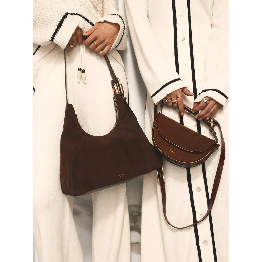 - Crafted from luxurious full grain leather for a rich, soft feel - Features a leather-wrapped bar handle for elegant grip - Accented with brushed gold custom hardware for a sophisticated look - Designed to offer an instantly luxurious aesthetic - Perfect for elevating your everyday style